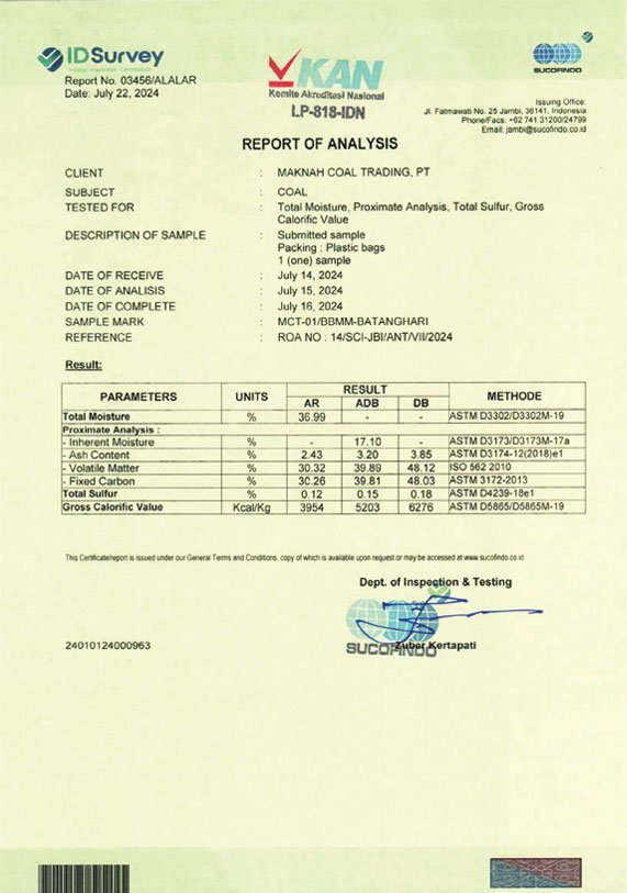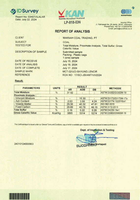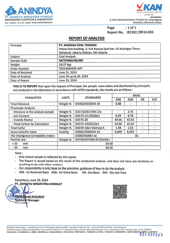 Here, you’ll find detailed, verifiable assessments of our coal quality, ensuring transparency and trust in every transaction. Each RoA provides in-depth data on calorific value, ash content, sulfur levels, and more, reflecting our commitment to delivering consistent, high-quality coal that meets industry standards and client expectations.
